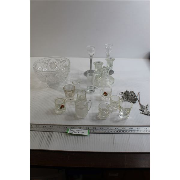 Angel Ornaments, Glass Bowl, Shot Glasses, Assorted Glassware1119 - Angel Ornaments, Glass Bowl, Shot Glasses, Assorted Glassware