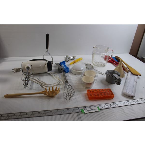 Measuring Spoons, Sunbeam Mixer - Works, Assorted Kitchenware1124 - Measuring Spoons, Sunbeam Mixer - Works, Assorted Kitchenware