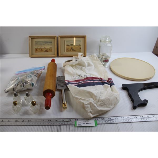 Rolling Pin, (2) Pictures, Assorted Kitchenware1125 - Rolling Pin, (2) Pictures, Assorted Kitchenware