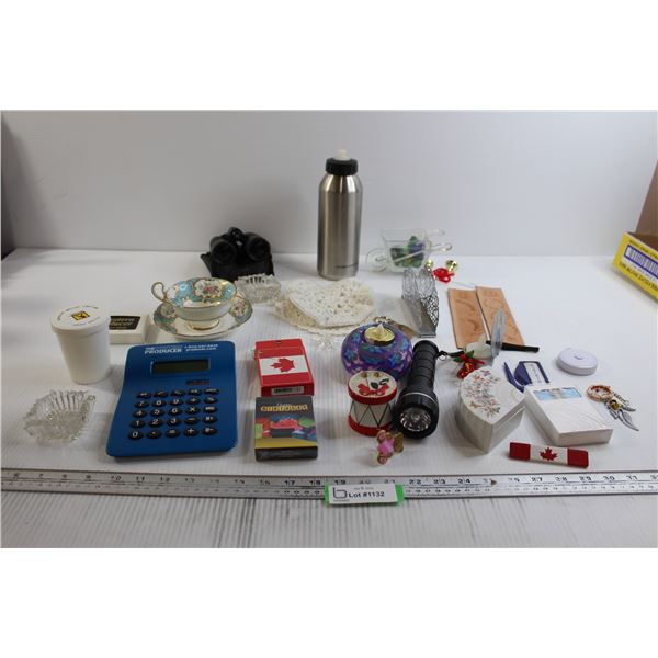 Matching Teacup and Saucer, Binoculars, Assorted Trinkets1132 - Matching Teacup and Saucer, Binoculars, Assorted Trinkets