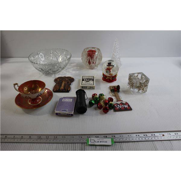 Angel Ornaments, Glass Bowl, Shot Glasses, Assorted Glassware