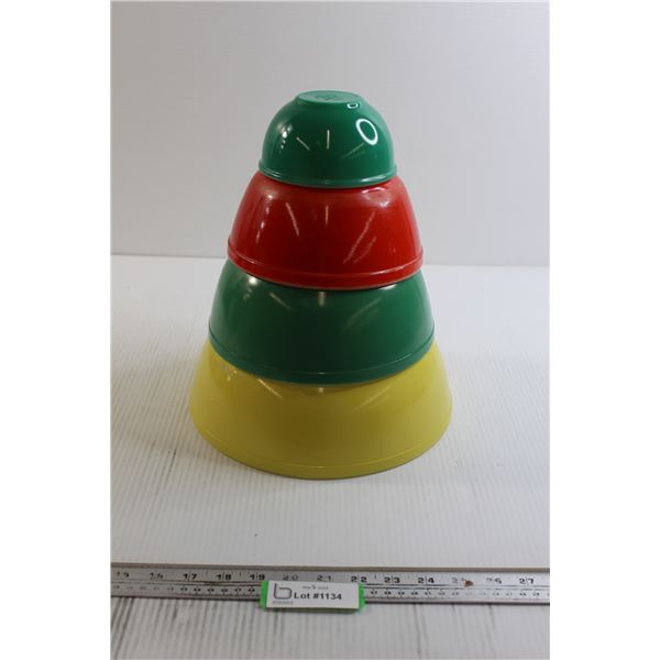 (4) Fire-King Mixing Bowls - Some Markings on Bottom1134 - (4) Fire-King Mixing Bowls - Some Markings on Bottom