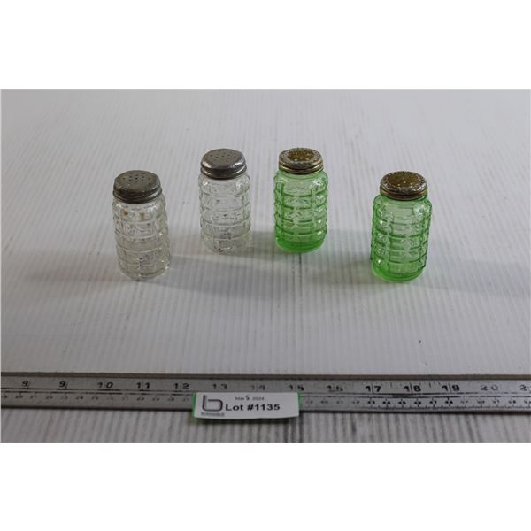 (2) Pairs Salt and Pepper Shakers - (1) Pair is Uranium Glass