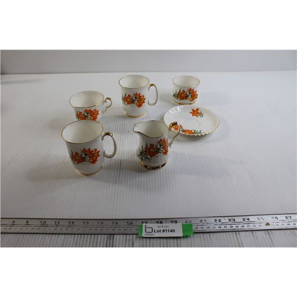 (4) Matching Teacups and Saucers, (2) Extra Matching Saucers, Cream and Sugar Set