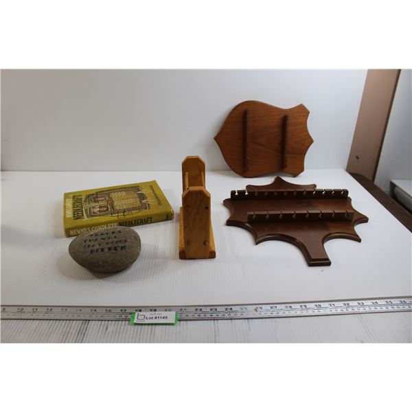 (2) Souvenir Spoon Racks, Needlecraft Book, Misc.