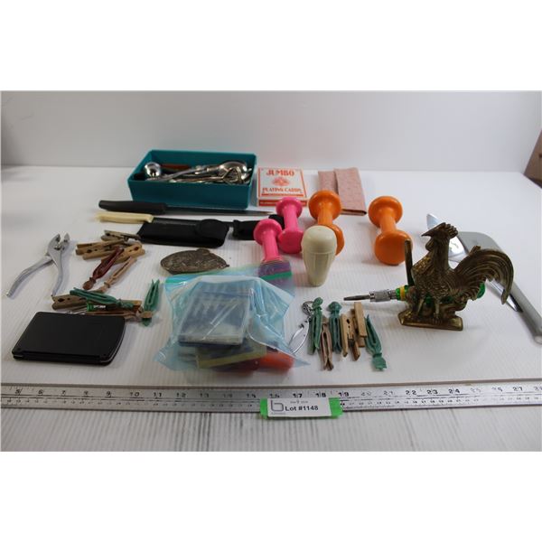 (4) Weights, Clothespins, Utensils, Misc.1148 - (4) Weights, Clothespins, Utensils, Misc.