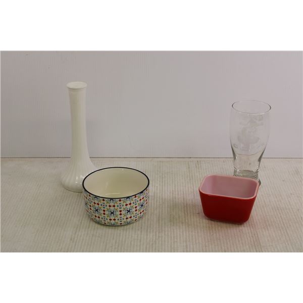 Vase, Bowl, Guy Lafleur Cup and Pyrex Refidgerator Dish