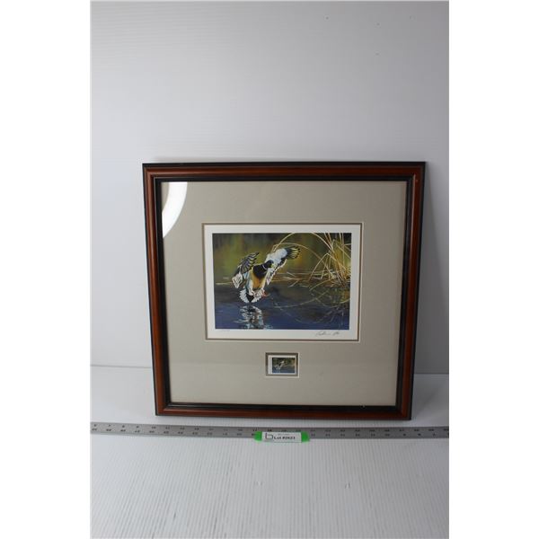 Framed Ducks Unlimited Art and Stamp - 17" x 17 1/2"