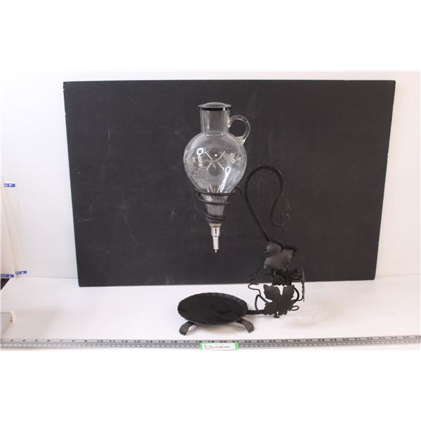 Decorative Black Iron & Glass Wine Decanter / Dispenser