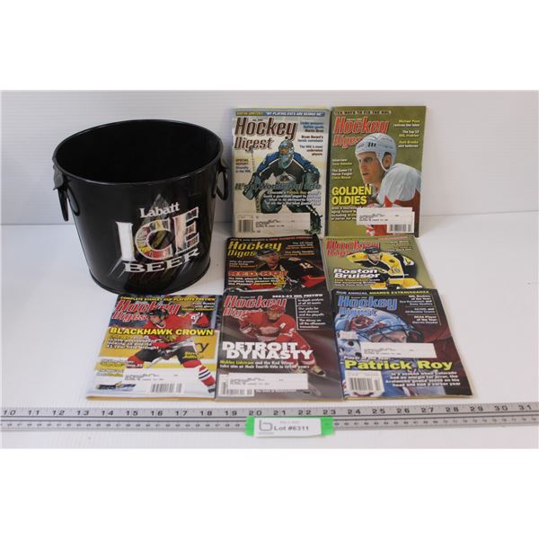 (8) Labatt ICE Beer Metal Ice Bucket; 7 Hockey Digest - 2002 Jan - May Summer & Nov Issues