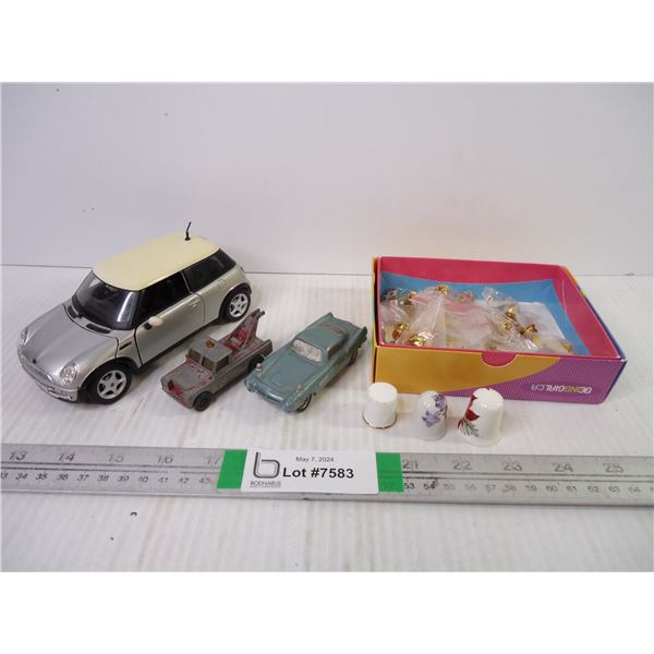 Mini Cooper Car, Corgi Fire Truck, Car,(3) Thimbles and (16) Saskatchewan Pins