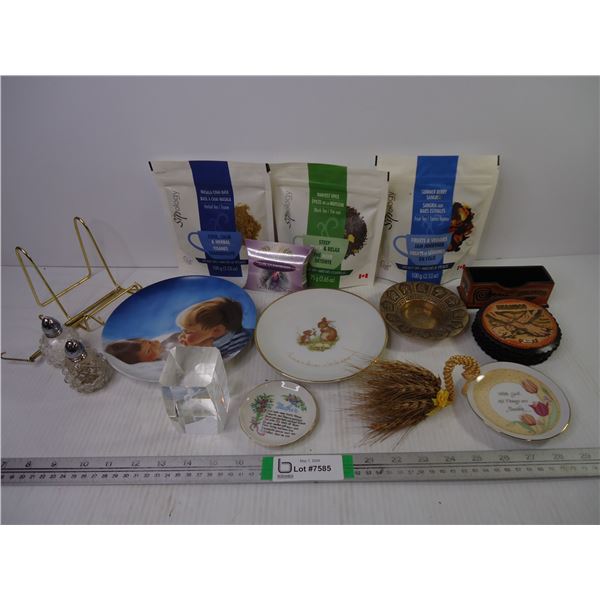 (3) Pkgs. of Specialty Teas, Souvenir Plates, Salt/Pepper Set, misc.. souvenirs