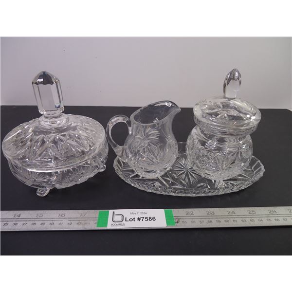 (3) Piece Creamer, Sugar Dish and Tray and Footed Candy Dish