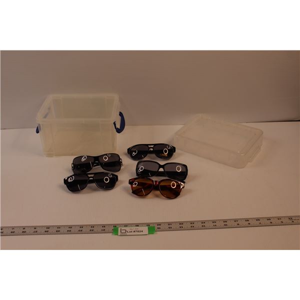 (5 pr) Generic Sunglasses w/ Small 3L "Really Useful Box" Plastic Tote & Lid