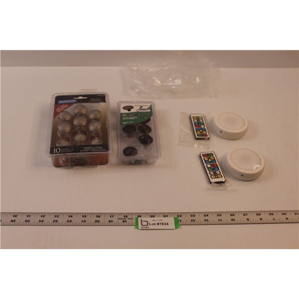 (2 pks) Cabinet Knobs Amerock & Liberty (Both Opened) & (2) Battery Powered Light w/Remotes