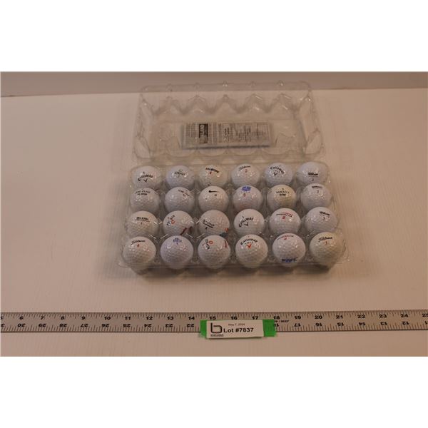 (24) Used Golf Balls Of Various Manufactures - Some with Branded Sponsors (Nike, Callaway, Titleist, Wilson, Strata, Srixon, Pinnacle etc.)