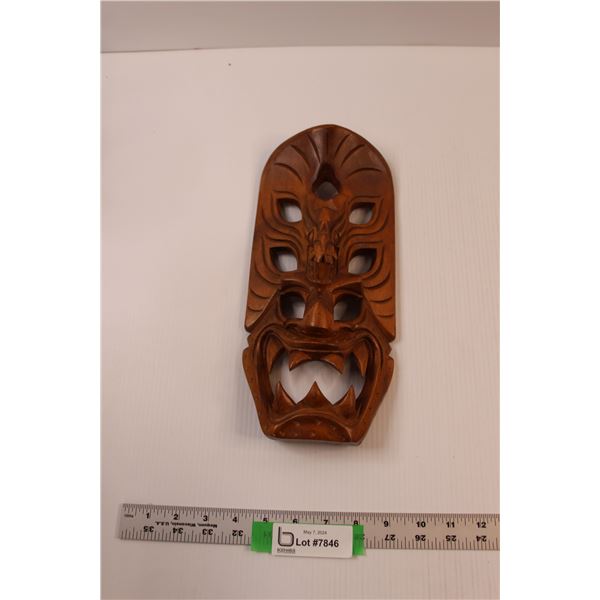 Hand Carved Wooden Head - Bearded Triable Leader (Wall Hanger)
