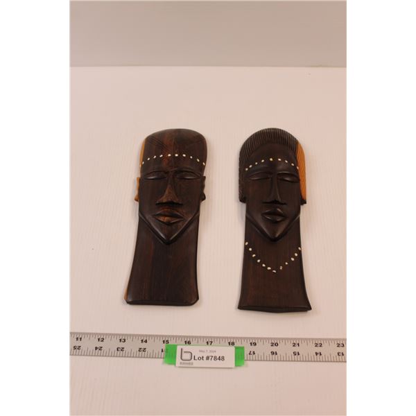 (1 pr) Hand Carved African Heads w/Inlays - Possibly Iron Wood (Heavy)
