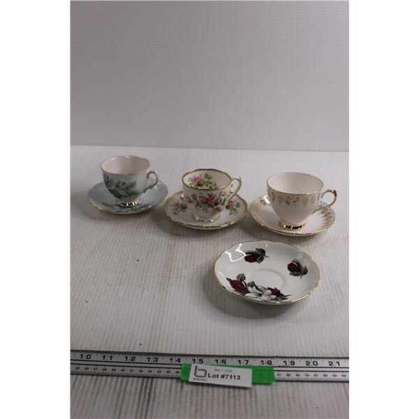 (3) Teacups with Matching Saucers - Queen Anne, Extra Saucer