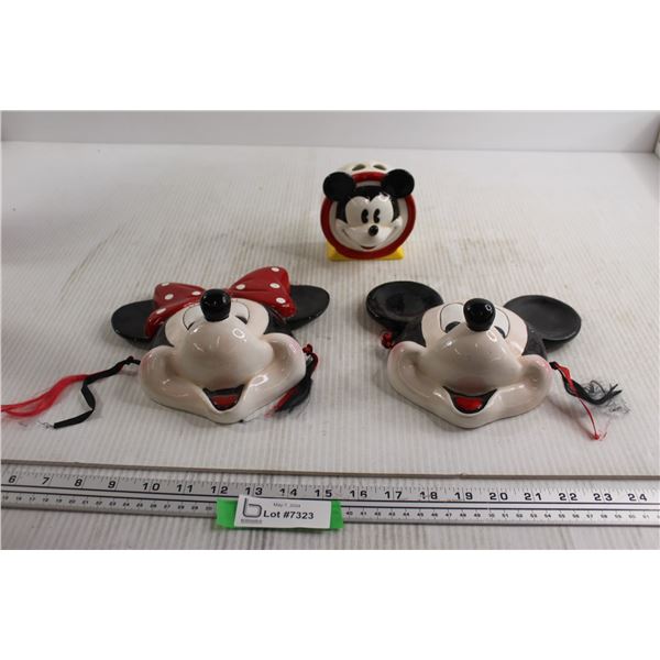 (2) Mickey and Minnie Mouse Wall Hangings, Mickey Mouse Toothbrush Holders