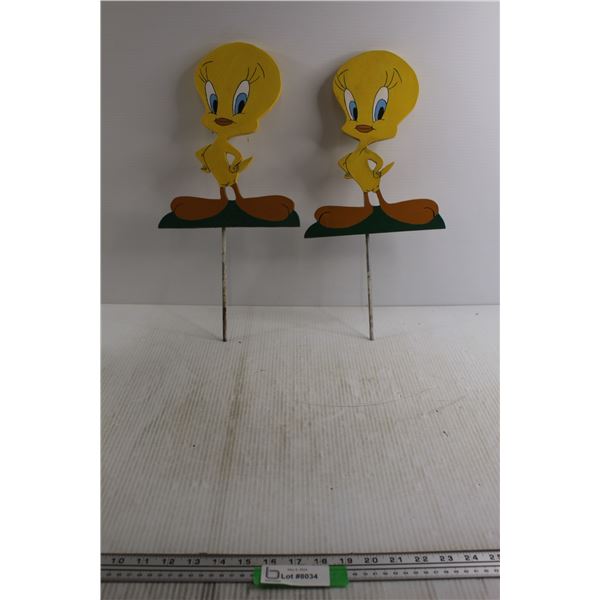 (2) Tweedy Bird Wooden Lawn Ornaments - 12 1/2" H