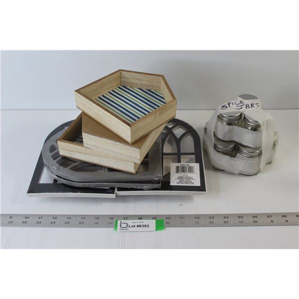 (10) Spice Jars, (6) Wall Hangings, etc.