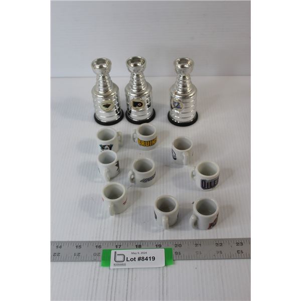 NHL Collectibles - (3) Miniature Stanley Cups, (9) Miniature NHL Team Cups