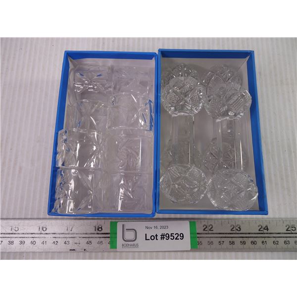 (8) Crystal Napkin Rings and (4) Crystal Knife Rests