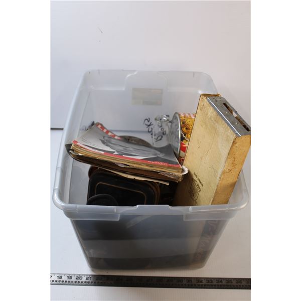 Bin Of Misc. Items / Time Magazine / Curling Trophies