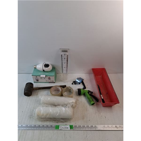 Wifi Smart Camera, Rubber Hammer, Paint Rollers, Packing Tape, Misc