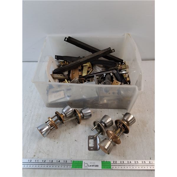 Plastic Bin, Door Knobs, Shelf Brackets, Hinges, Misc