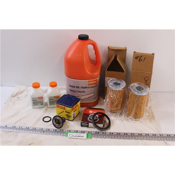 STIHL Chainsaw Chain Oil & (2) Two Stroke Fuel (CANNOT SHIP), (2) Fuel Filters, Thermostat, Misc.