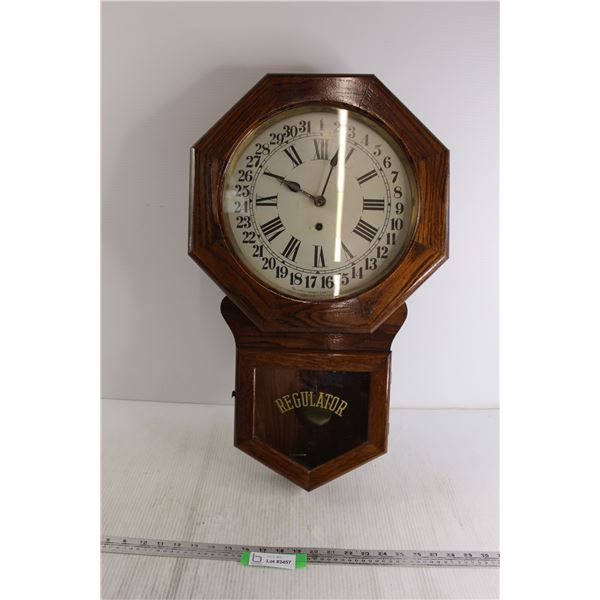 Vintage Arthur Pequegnat Regulator Wall Clock w/ Key and Pendulum - Missing Day Hand - Untested