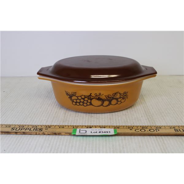 Pyrex 1.5 Quart Casserole #43 Old Orchard w/ Brown Lid
