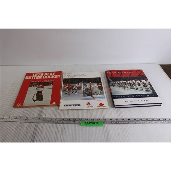 Team Canada 1972 Summit Series Official Hockey TV Program, 1973 Ken Dryden Let's Play Hockey McDonald's Guidebook, 1972 Team Canada Book