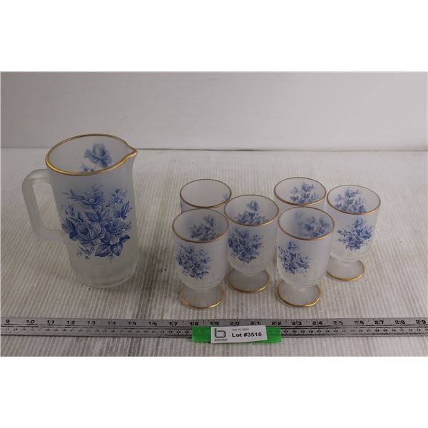 Depression Glass Herringbone and Iris Pitcher