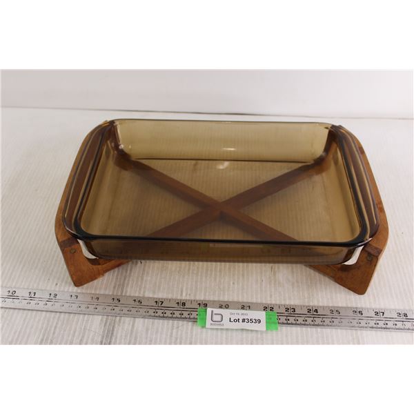 Mid-Century Baking Dish w/ Wooden Holder 9" x 13"