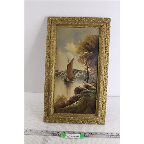 Framed Boat Acrylic Painting - 12 1/4" x 21"