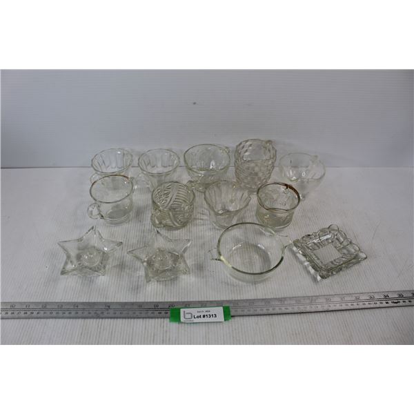 (13) Various Clear Glass Cups/ Dishes, Pyrex, Misc.- Some Chips