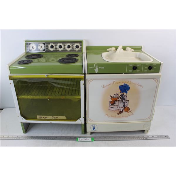 Holly Hobby Vintage Children Tin Oven And Sink w/ Dishwasher- 18'' Tall