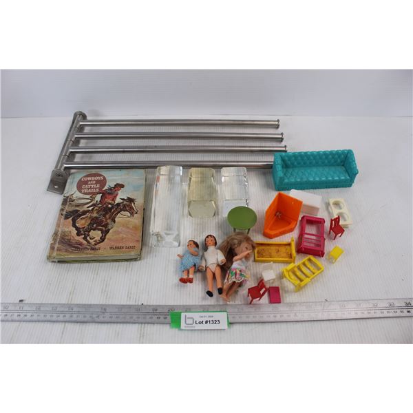 (3) Small Lazer Cut Glass Ornaments, Cowboys And Cattle Trails Book, Misc.