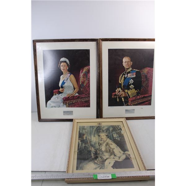 (3) Royal Family Framed Portraits, Queen Elizabeth ll, Duke Of Edinburgh Prince Phillip- Some Cracks