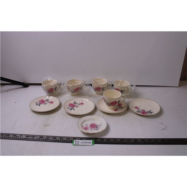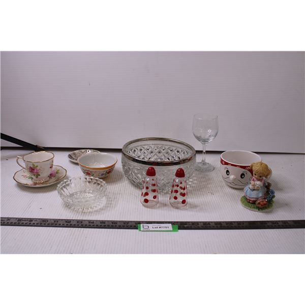 Polka Dot Salt and Pepper Set, Royal Albert "American Beauty" Cup and Saucer, + Misc. Glass Ware