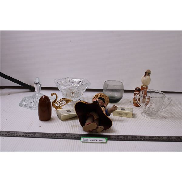 Glass Candy Dish w/ Lid, Sugar Bowl + Misc.