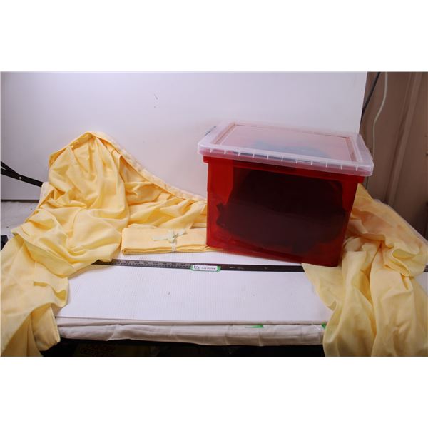 Yellow Drapes, Plastic Tote w/ Lid and Bag of Bags