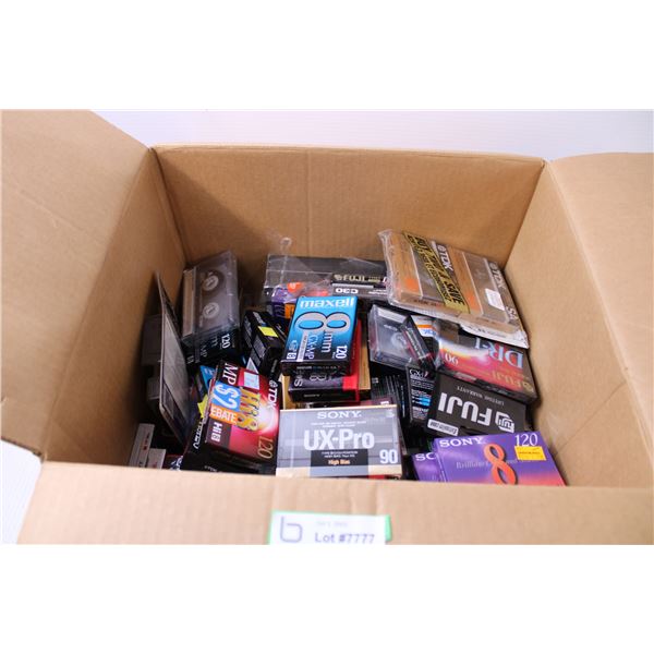 Box of Video and Audio Tapes (Most New)