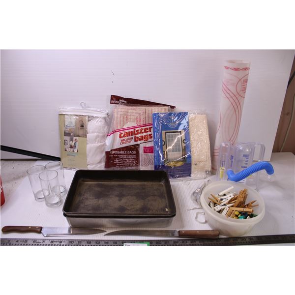 (2) Packs of Curtains (as is), (2) 9x13 Pans, Lung Test + Misc.