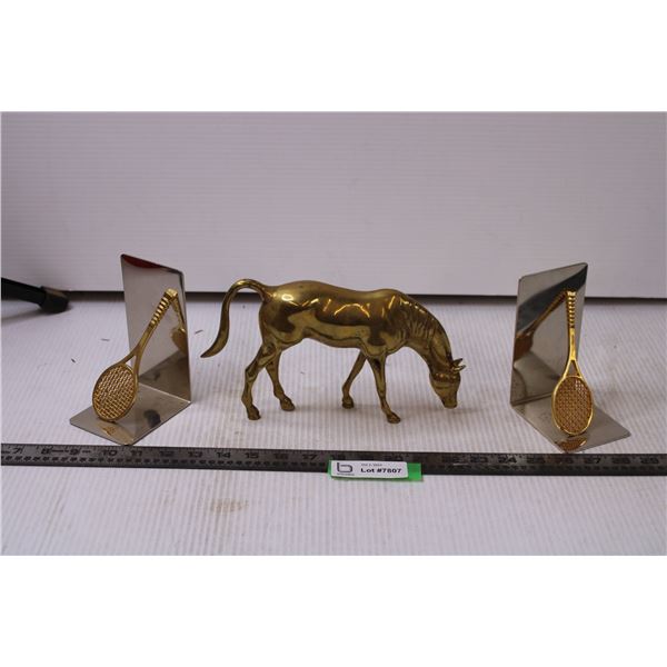 Brass Horse Figure and Tennis Bookends