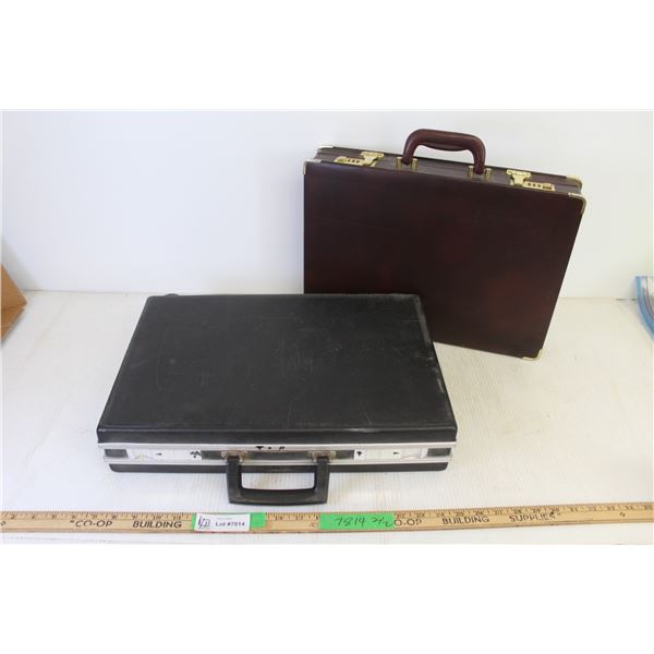 Black Arborite Briefcase (No Key), Brown Faux Leather Briefcase