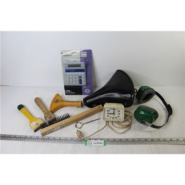 Westclox Electric Clock (working) - Ear Protection - Bicycle Seat - Calculator - Small Hand Tools